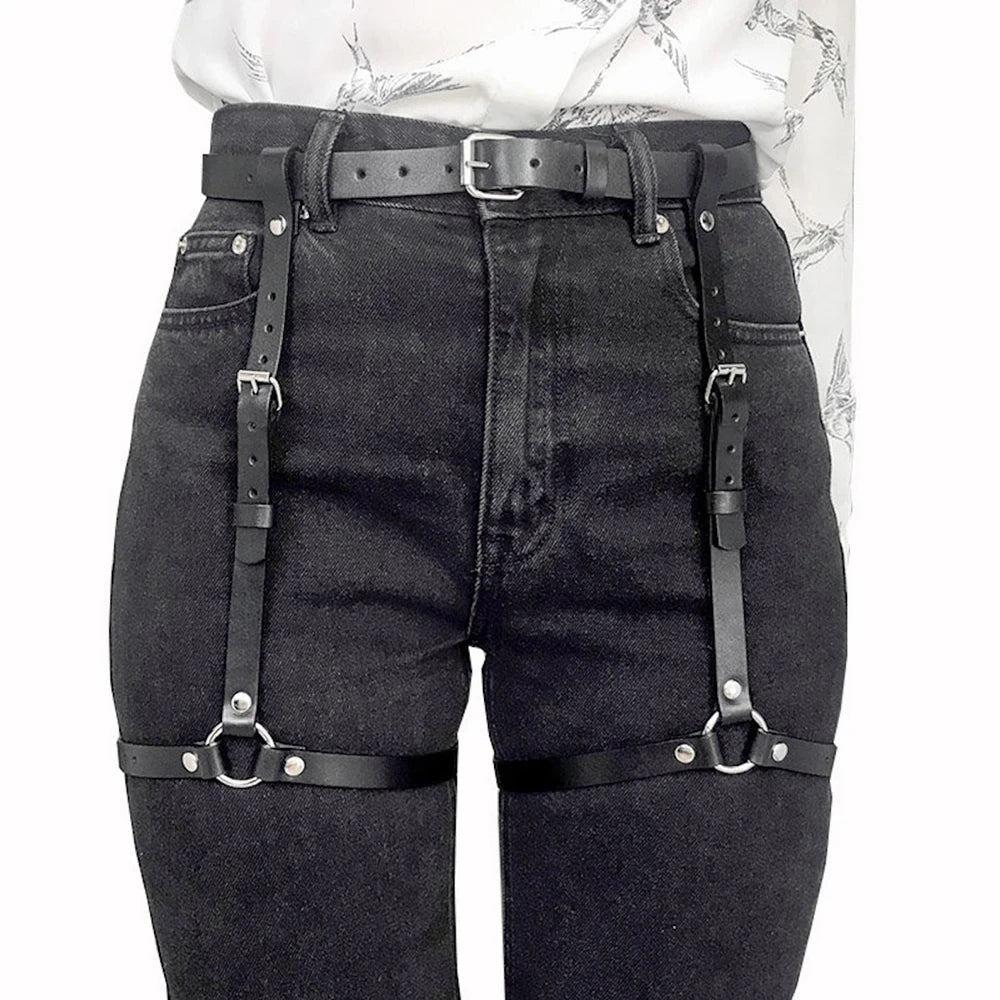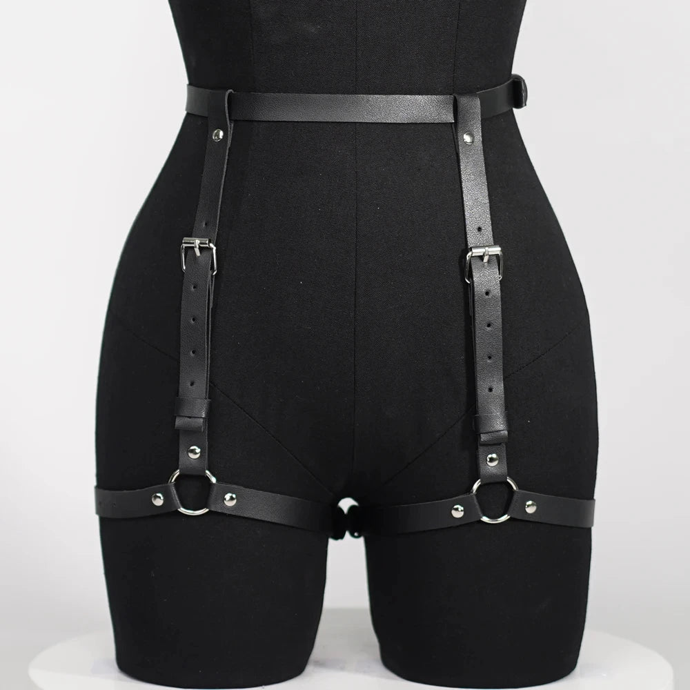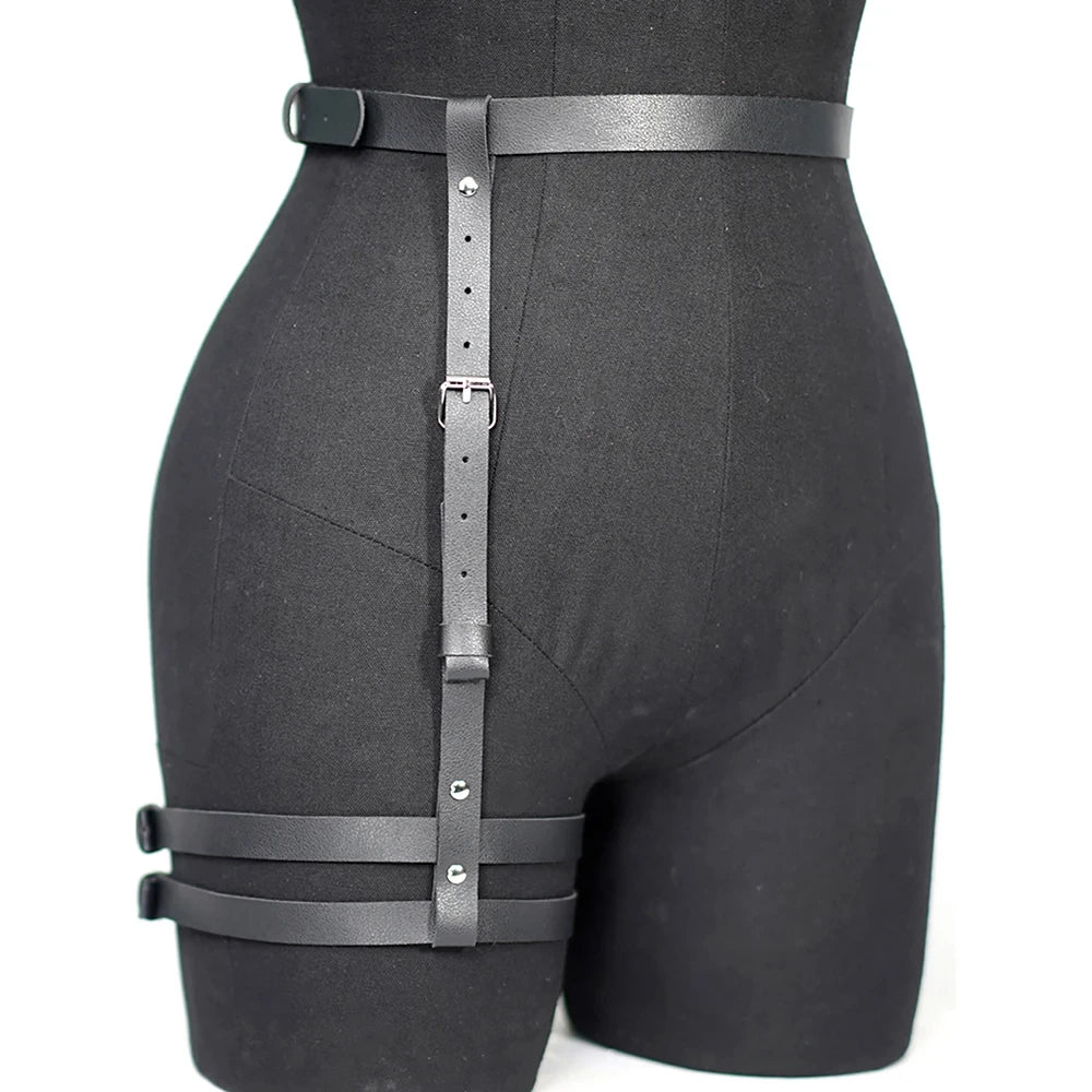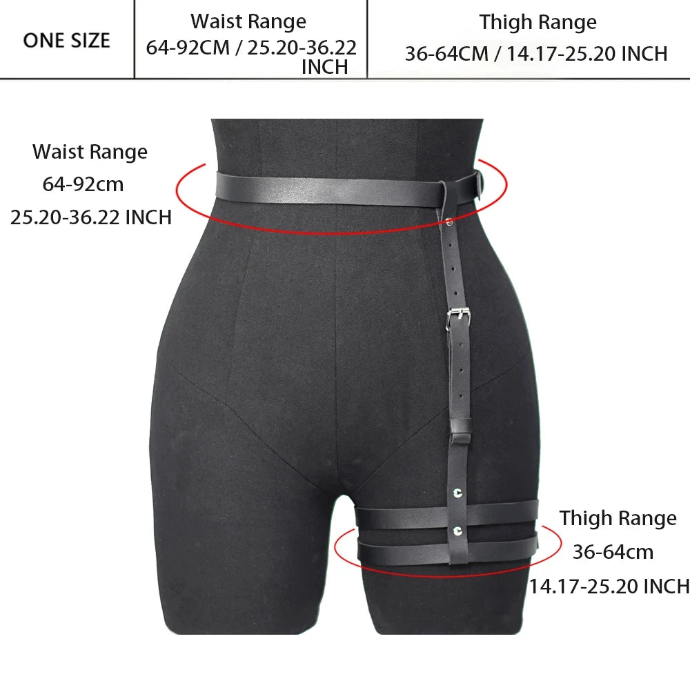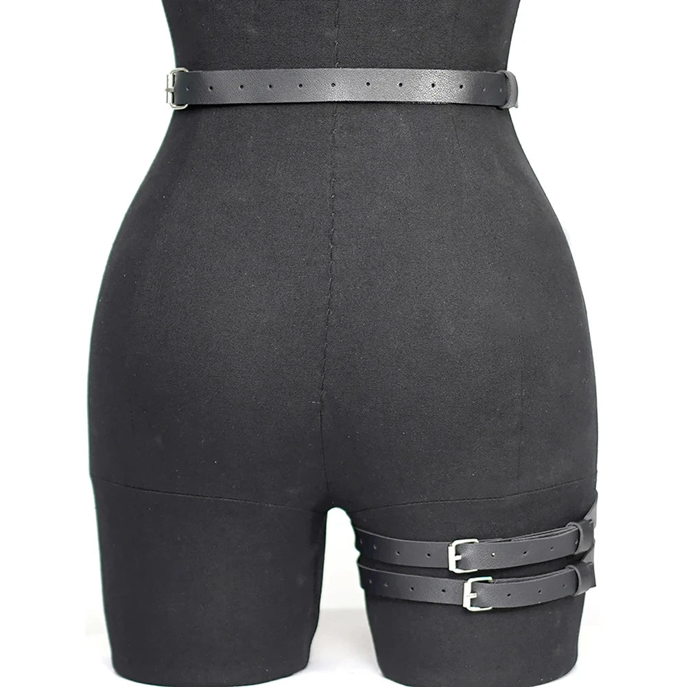 Fashionable Women's Pu Leather Leg Harness Body Harness Breast Punk Gothic Leg Garter Belts Gothic Waist Belt Clothing Accessor